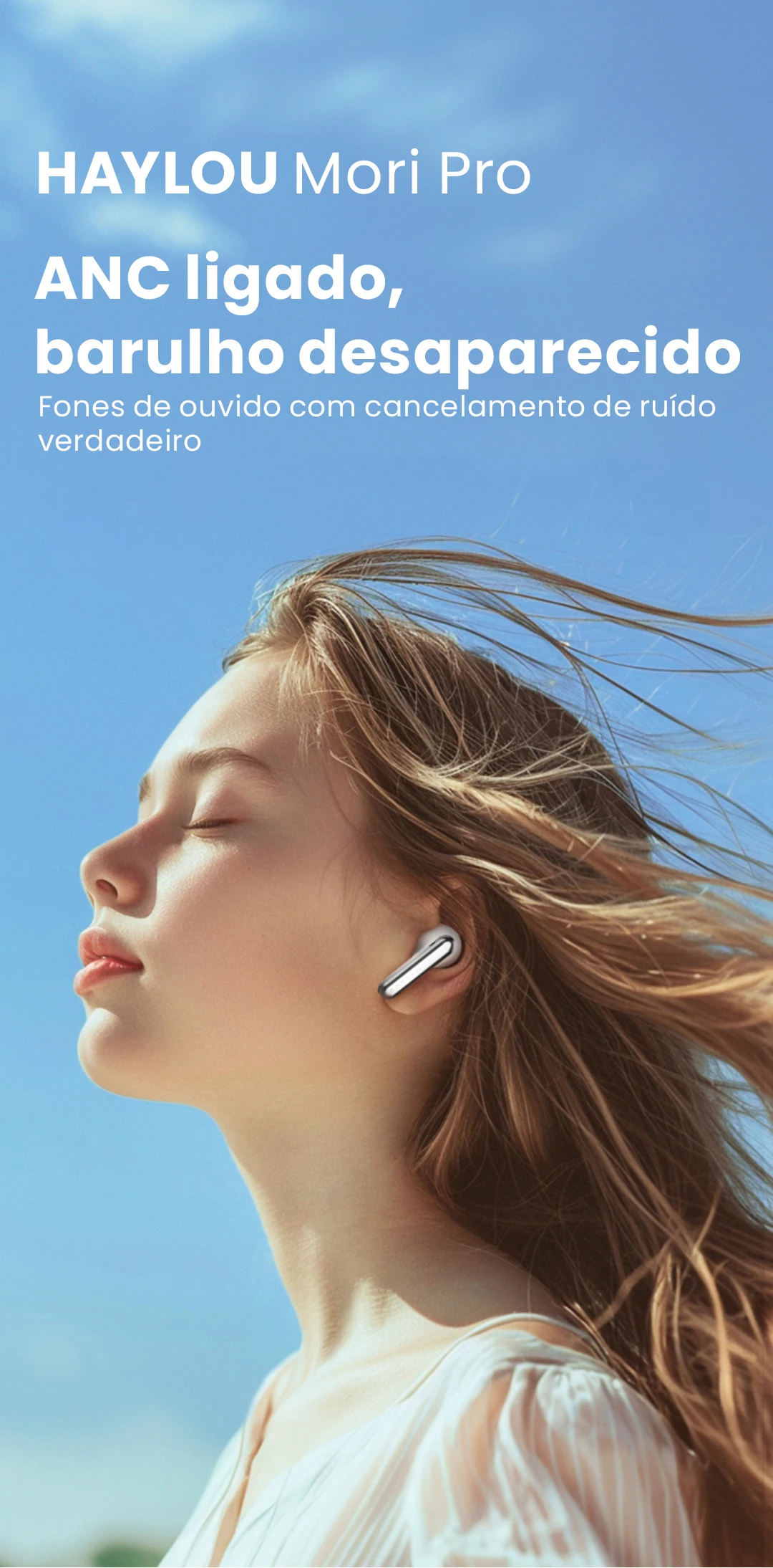 Cancelamento ativo híbrido adaptativo do ruído: O fone de ouvido HAYLOU Mori Pro vem equipado com cancelamento de ruído ativo adaptativo (ANC) que se adapta inteligentemente ao ambiente, garantindo que o ruído ambiente seja efetivamente eliminado. O design também incorpora 6 microfones e resistência ao ruído do vento, tornando-os ideais para atividades ao ar livre e aventuras em movimento.
