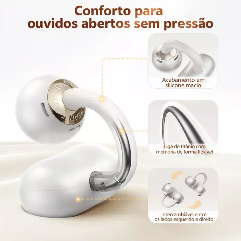 Desfrute de um som cristalino e sem interferências com o QCY Crossky C50 6.0. Com drivers de alta qualidade, este fone oferece agudos nítidos, médios balanceados e graves profundos, proporcionando uma experiência sonora rica em detalhes. Além disso, seu design ergonômico se adapta perfeitamente ao ouvido, garantindo conforto durante horas de uso contínuo. Você nem vai sentir que está usando.