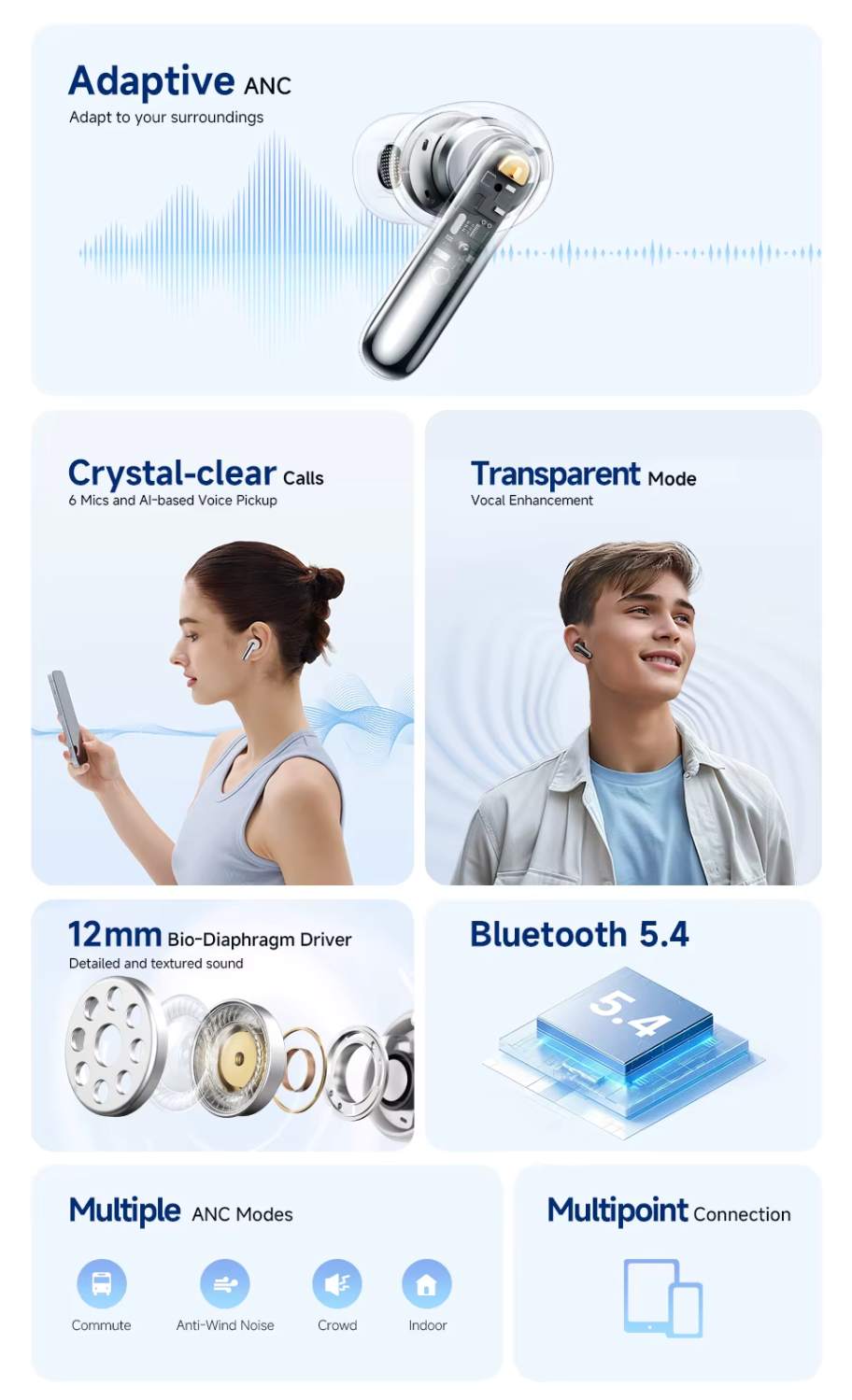 Experimente a liberdade de se movimentar sem se preocupar com fios ou emaranhados. Com a conectividade Bluetooth avançada do QCY MeloBuds N50 ANC, você pode desfrutar de sua música favorita ou se comunicar com clareza onde quer que esteja. Sinta a praticidade e a modernidade na palma das suas mãos, sem perder nenhum detalhe da sua experiência sonora.